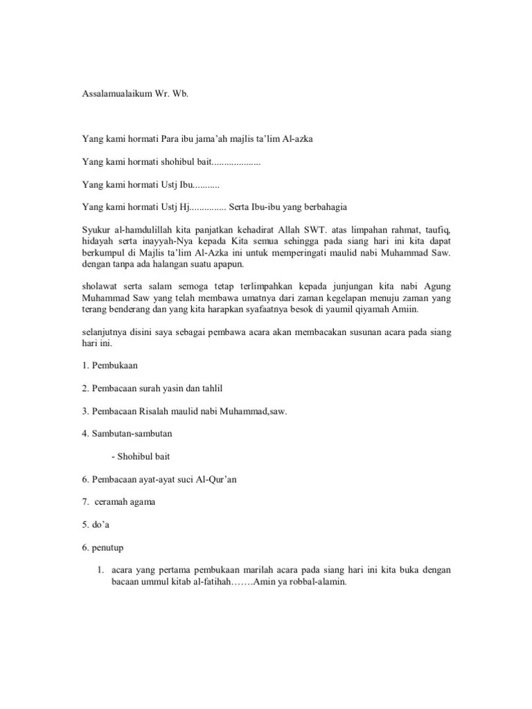 Contoh Teks Pembawa Acara Pdf Contoh Mc Maulid Nabi |